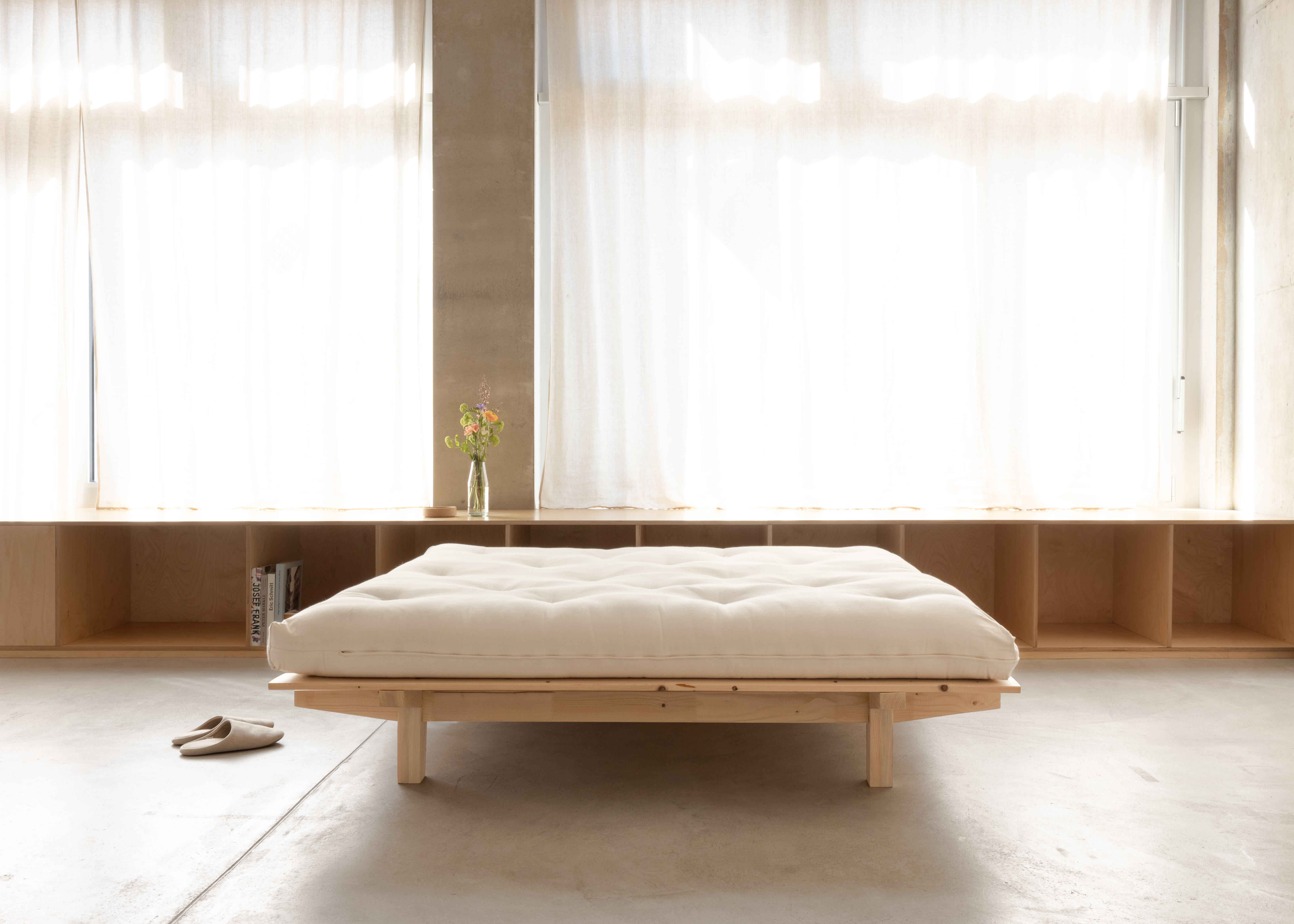 Im Gegensatz zu herkömmlichen Betten wird hier auf die Trennung von Bettrahmen und Lattenrost verzichtet und die Konstruktion auf das Notwendigste reduziert. Für eine ständige Belüftung der Auflage - das A und O für einen gesunden Schlaf - ist ebenfalls gesorgt.